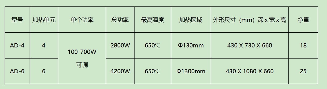 2、具有熱效率高、壽命長(zhǎng)、起溫和降溫速度快、加熱時(shí)間和加熱功率可調(diào)等優(yōu)點(diǎn);